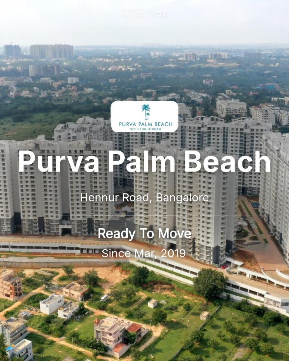 Purva Palm Beach is a flagship luxury residential project by Puravankara Limited, spread over 19.37 acres on Hennur Road. Completed in 2019, the development is famous for its 4-acre central lagoon that replicates the sights and sounds of a tropical beach. It comprises 19 towers offering a unique vacation-at-home lifestyle with world-class infrastructure.