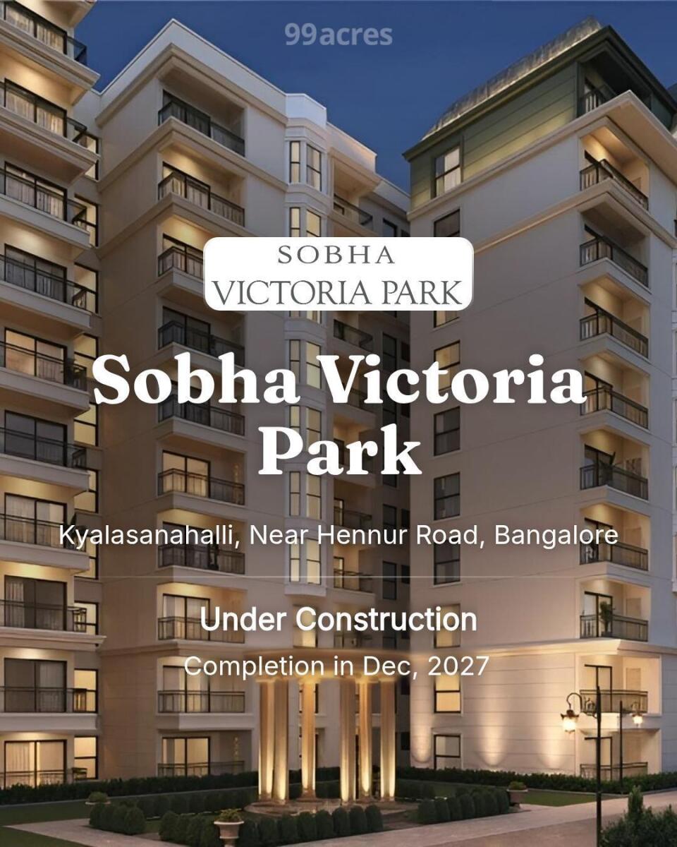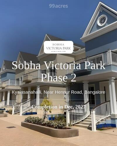 Sobha Victoria Park is a premium residential enclave located in Kyalasanahalli, off Hennur Road, Bangalore. Inspired by Victorian architecture, the project spans 6.5 acres and offers a blend of luxury apartments and exclusive row houses. It is designed to provide a sophisticated lifestyle with meticulously planned open spaces and high-quality finishes.